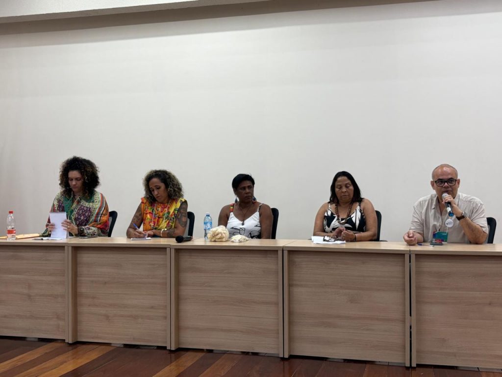 Participamos da mesa-redonda “Que futuro plantamos? A mandioca como mediadora na produção de conhecimento, memórias e na construção de outros amanhãs em comunidades quilombolas e aglomerados urbanos”, com a presença do coordenador do SoFiA, Bráulio Chaves, tendo como expositoras: Lucia Helena Apolinária, (Liderança feminina da favela Cabana do Pai Tomás/Belo Horizonte-MG), Maria Aparecida Nunes Silva (do Quilombo Córrego do Narciso/Minas Gerais), Polyana Aparecida Valente (UEMG/Ibirité) e Flora Rodrigues Gonçalves (FIOCRUZ-Minas).