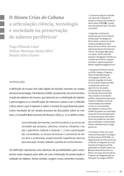 O Museu Crias do Cabana: a articulação ciência, tecnologia e sociedade na preservação de saberes periféricos